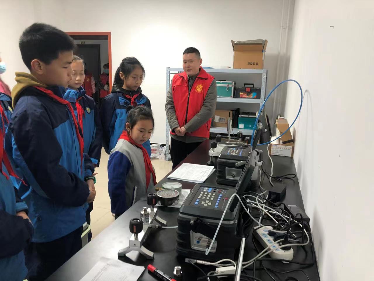 然后,在計量所三樓教育培訓(xùn)室,工程師向師生上了一堂生動的計量知識課。介紹了計量所的基本情況、工作職責(zé)和業(yè)務(wù)范圍,對涉及貿(mào)易結(jié)算、安全防護、醫(yī)療衛(wèi)生、環(huán)境監(jiān)測、行政執(zhí)法、司法鑒定、工業(yè)工程等不同領(lǐng)域,日常生活中常接觸的電子秤、天平、加油機、出租車計價器、血壓計、雷達測速儀等計量器具逐項講解,觀看了《計量為夢想插上翅膀》、《度量未來》紀(jì)錄片,進入實驗室?guī)熒鷤兞憔嚯x接觸了計量標(biāo)準(zhǔn)設(shè)備,觀看了工程師如何對計量器具進行檢定。