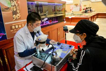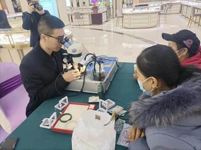 3月15日,山東省計量院國家黃金鉆石制品質(zhì)量檢驗檢測中心結(jié)合黨支部“百年傳承 恒久閃耀”品牌化建設(shè),派出省級“青年文明號”專業(yè)技術(shù)人員赴濟南、濱州兩地開展珠寶首飾免費鑒定咨詢服務(wù),并向消費者科普珠寶相關(guān)知識和解疑答惑,兩地共檢測珠寶玉石飾品500余件,涵蓋翡翠、和田玉、鉆石、紅寶石、祖母綠、碧璽、水晶等多個珠寶品類,技術(shù)人員憑借專業(yè)的知識講解和精準(zhǔn)的鑒定檢測,為消費者安心選購珠寶提供了指導(dǎo),切實維護了消費者的權(quán)益。
