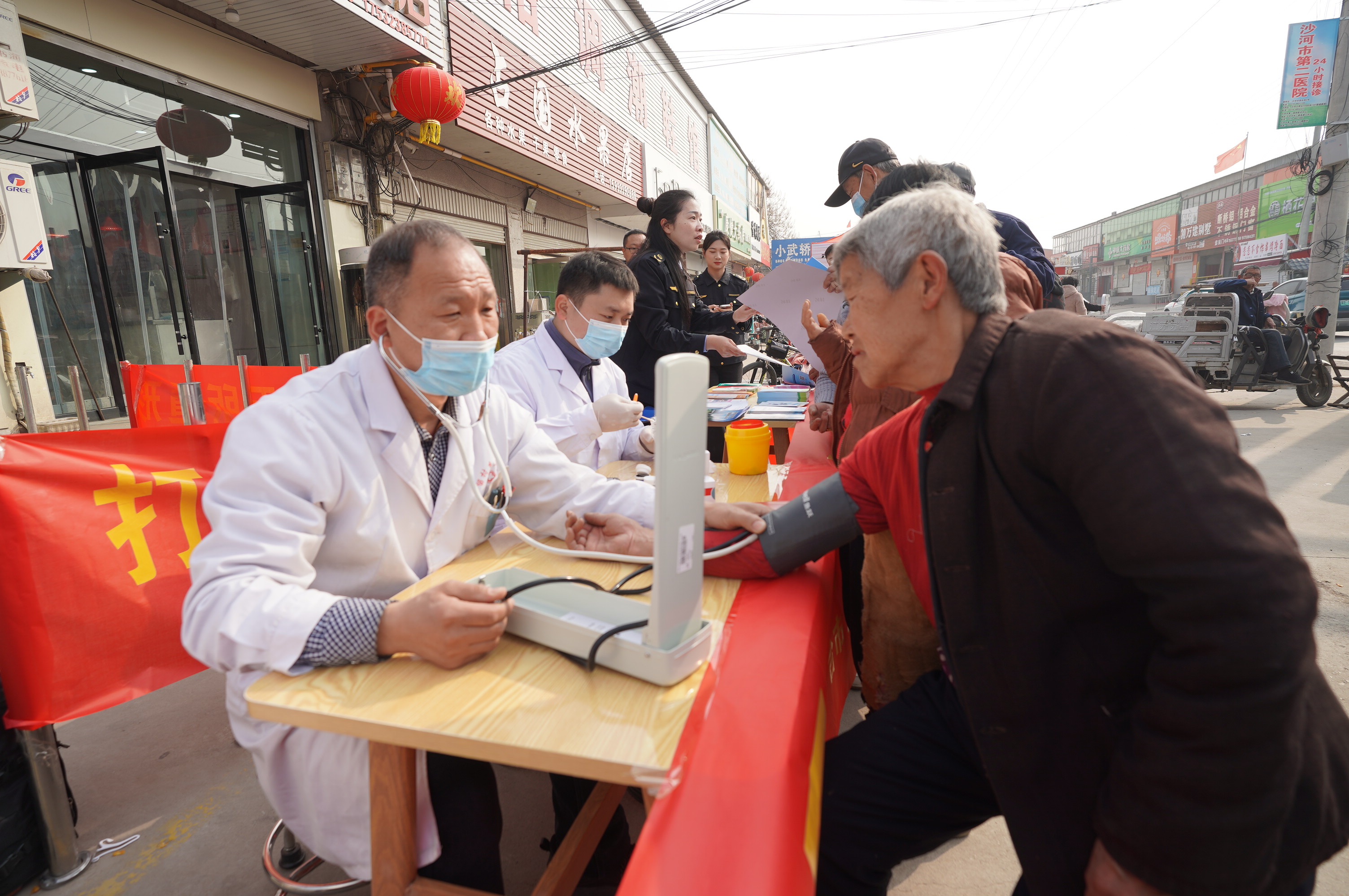 3月11日,醫(yī)務(wù)人員正在邢臺(tái)經(jīng)濟(jì)開(kāi)發(fā)區(qū)留村辦事處商貿(mào)街為群眾檢測(cè)血壓 。(4)