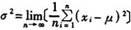 注1所說的方差σ2,則是無窮多次測量所得觀測值xi與期望μ之差的平方的算術(shù)平均值,它也只是在理論上存在并可表示為