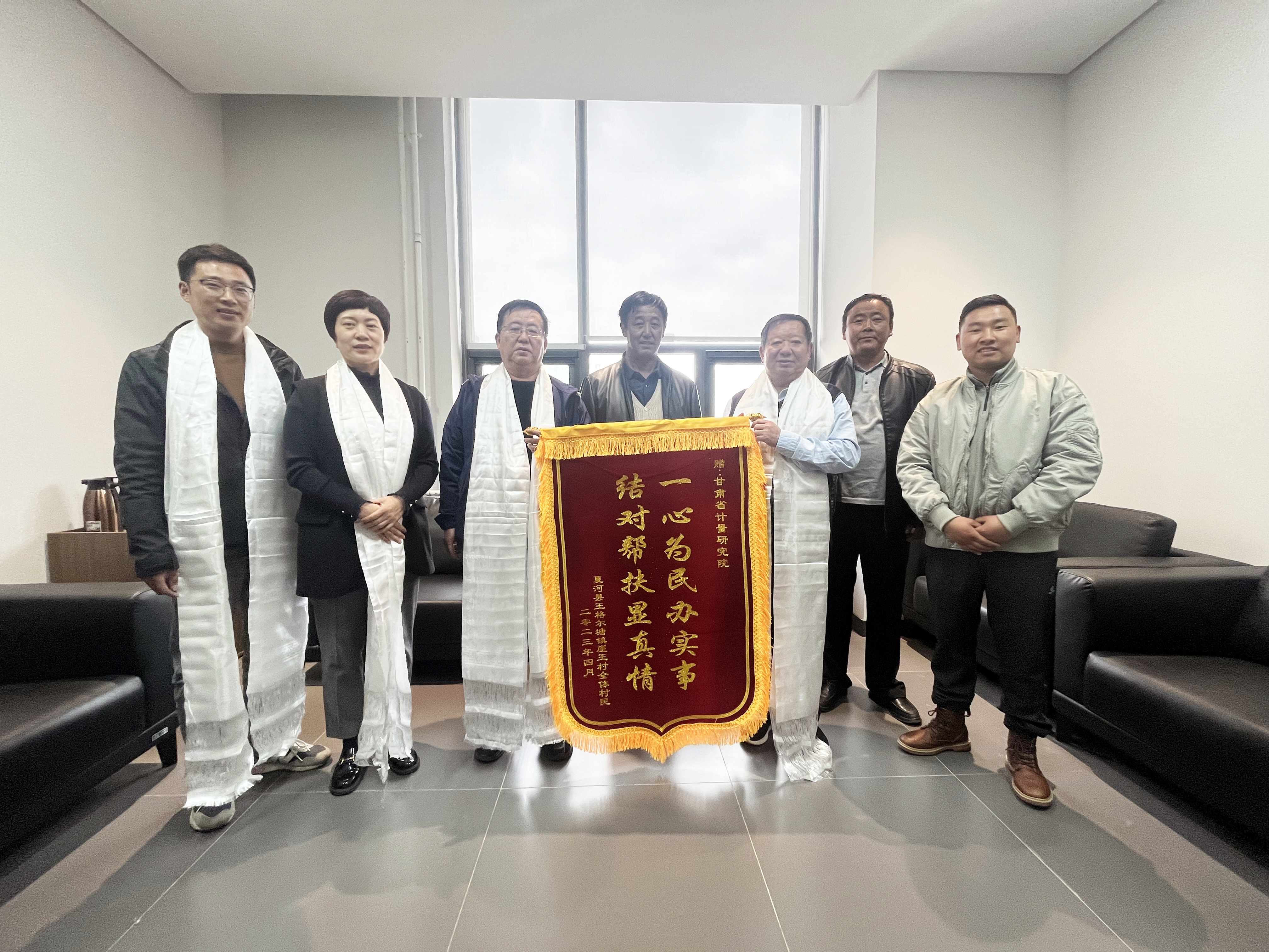4月3日,夏河縣王格爾塘鎮(zhèn)崖玉村“兩委”一行三人專程來(lái)到甘肅省計(jì)量研究院,贈(zèng)送印有“一心為民辦實(shí)事,結(jié)對(duì)幫扶顯真情”的錦旗,代表全體村民感謝甘肅省計(jì)量研究院對(duì)崖玉村的真情幫扶。
