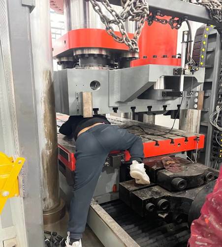 因該實(shí)驗(yàn)儀器的特點(diǎn),技術(shù)人員只能保持趴著的姿勢(shì)進(jìn)行計(jì)量工作。為不影響該設(shè)備第二天正常使用,河南省計(jì)量院力學(xué)兩位技術(shù)人員決定連夜進(jìn)行檢定。連續(xù)近7個(gè)小時(shí)的檢定,凌晨時(shí)分終于完成檢定任務(wù)。