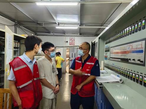 ▲計量黨員骨干在生產(chǎn)車間了解企業(yè)能源計量工作開展情況