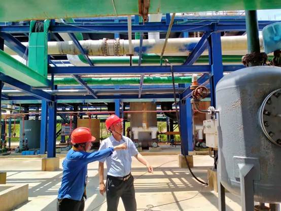 ▲市計量所專家組在生產(chǎn)車間了解企業(yè)能源計量工作開展情況