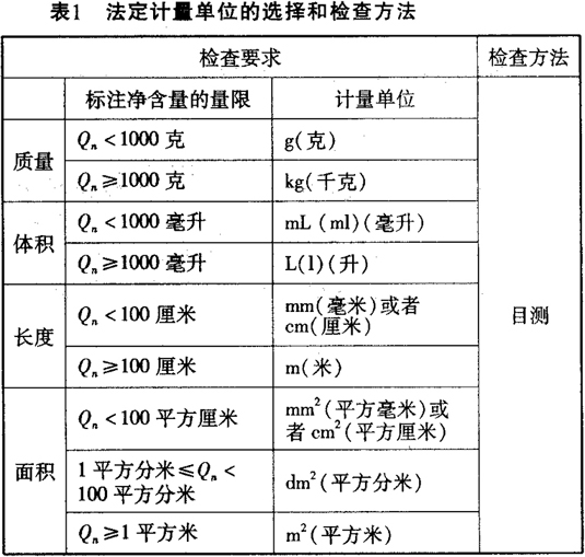 《規(guī)則》規(guī)定法定計量單位的選擇應當符合表1的規(guī)定。表1與原《定量包裝商品計量監(jiān)督規(guī)定》表(四)的規(guī)定相比,對于質量、體積和長度標注的凈含量的計量單位的要求是相同的,區(qū)別是增加了對以面積標注的凈含量的計量單位要求。