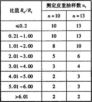 ?、谝?I>Rc/Rt的比值和樣本量n為索引,從表2查出測定皮重抽樣數(shù)nt,該抽樣數(shù)包括步驟①中已抽取的2件樣本單位。