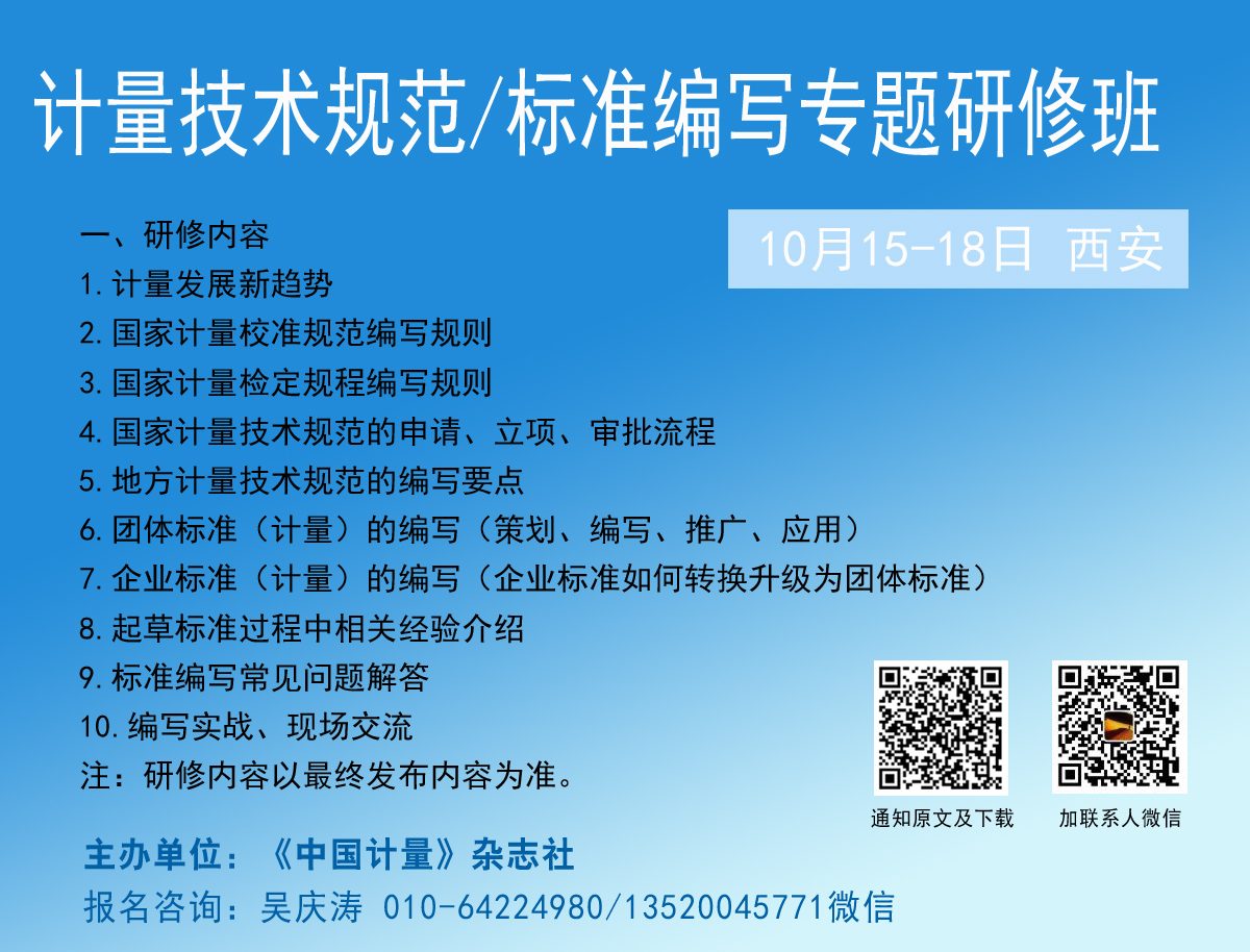 為貫徹落實(shí)《計(jì)量發(fā)展規(guī)劃2021-2035年》、《國(guó)家標(biāo)準(zhǔn)化發(fā)展綱要》相關(guān)要求,加強(qiáng)計(jì)量基礎(chǔ)能力建設(shè),夯實(shí)新產(chǎn)業(yè)、新技術(shù)、新業(yè)態(tài)創(chuàng)新發(fā)展的計(jì)量技術(shù)基礎(chǔ)設(shè)施,有效提升計(jì)量技術(shù)規(guī)范/標(biāo)準(zhǔn)制修訂水平,推動(dòng)計(jì)量技術(shù)規(guī)范和團(tuán)體標(biāo)準(zhǔn)建設(shè)(計(jì)量),為技術(shù)產(chǎn)業(yè)融合發(fā)展提供穩(wěn)定高效的計(jì)量技術(shù)服務(wù),助推新質(zhì)生產(chǎn)力加快形成?!吨袊?guó)計(jì)量》雜志社將于2024年10月15日至18日在西安市舉辦“計(jì)量技術(shù)規(guī)范/標(biāo)準(zhǔn)編寫專題研修班”,以幫助計(jì)量相關(guān)技術(shù)規(guī)范/標(biāo)準(zhǔn)編寫人員解決實(shí)際工作中的問題,提高計(jì)量人員的編寫能力。本培訓(xùn)班自愿參加,歡迎各單位積極報(bào)名,通知如下: