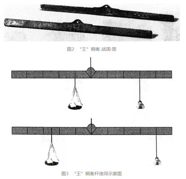 戰(zhàn)國(guó)時(shí)期,墨家以勤勞、刻苦、勇于實(shí)踐而著稱?!赌?jīng)》中記述了許多自然科學(xué)的知識(shí),其中在對(duì)杠桿平衡力學(xué)的討論中,曾以衡桿作為例子,論述了力矩概念。原文是:“衡加重于其一旁必捶(垂),權(quán)重(不?)相若也,相衡則本短標(biāo)長(zhǎng)。兩加焉,重相若,則標(biāo)得權(quán)也”。對(duì)《墨經(jīng)》這一條中的標(biāo)點(diǎn)、解釋各有不同(此處我們釆用了錢寶琮《<墨經(jīng)>力學(xué)今釋》),但有一點(diǎn)大家認(rèn)識(shí)上是一致的,即對(duì)不等臂衡桿從理論上作了探討。這段話的大意是:僅在衡桿的一旁加重物,衡桿必定會(huì)下垂。只有權(quán)與所加的重物相等時(shí),衡桿才能保持平衡,如果衡桿的支點(diǎn)不在中間,就形成了本(力矩)短、標(biāo)(力矩)長(zhǎng),即衡桿就不能保持平衡了。這段文字足以證明戰(zhàn)國(guó)時(shí)期《墨經(jīng)》的作者,對(duì)天平和桿秤力矩的原理已有認(rèn)識(shí)。戰(zhàn)國(guó)時(shí)期已廣泛使用桔槔提水,就是這一原理在實(shí)踐中的運(yùn)用,從而大大減輕了勞動(dòng)強(qiáng)度。那么,戰(zhàn)國(guó)時(shí)期是否已有了與今天的桿秤相似的衡器呢?目前還沒有任何跡象可以證明。但是介乎于天平與桿秤之間的一種衡器,有可能比較早地在某些地區(qū)使用了。據(jù)報(bào)道,國(guó)家博物館里收藏著兩件戰(zhàn)國(guó)時(shí)期的銅衡桿,正中有鼻紐,桿面刻十等分,全長(zhǎng)相當(dāng)于戰(zhàn)國(guó)時(shí)的一尺(見圖2)??甲C者認(rèn)為,這是一種經(jīng)過改進(jìn)后的天平衡桿,它既可以將物與權(quán)懸掛在等距離的兩端,作天平使用,又可以將兩者置于不同位置,從衡桿上的不同刻度和權(quán)的標(biāo)識(shí)計(jì)算出被稱物的重量,近似于桿秤(見圖3)。這種設(shè)想對(duì)不對(duì)呢?除了等待更多的地下發(fā)掘品加以證實(shí)外,還可以從與我們祖先處于同一歷史階段的少數(shù)民族中去找答案。帶著這個(gè)問題,我們走訪了中國(guó)社會(huì)科學(xué)院考古研究所。一位曾在20世紀(jì)五六十年代到云南邊區(qū),對(duì)當(dāng)?shù)厣贁?shù)民族度量衡進(jìn)行過一些調(diào)查的同志,熱情地向我們介紹說:在一般情況下,土著民對(duì)量的概念是比較模糊的,往往沒有一個(gè)固定的標(biāo)準(zhǔn)量值,在分配和交換時(shí),對(duì)物品的多少、輕重都不甚計(jì)較,但群眾中也有一些簡(jiǎn)單的度量衡工具。如有一次,他們采訪了一戶土著民家,正巧碰上另一位村民來(lái)借當(dāng)?shù)乇容^珍稀的鹽巴,主人便用一根提紐在中心的木衡,一邊垂重物即“權(quán)”,再將來(lái)者所借出的鹽放在橫桿的另一端,“權(quán)”來(lái)回移動(dòng),直至橫桿保持平衡后,再在置“權(quán)”的位置刻一橫線作記號(hào)。主人這一舉動(dòng)引起了調(diào)查者的極大興趣。主人說,這支簡(jiǎn)陋的“秤”是他自己做的,必要時(shí)偶爾用一次。待借物者歸還時(shí),只要把“權(quán)”仍置于所刻橫線處,便可以得到與所借出時(shí)重物相似的物品了。這種使用方法,在原理上與國(guó)家博物館那一支橫桿有幾分相似。