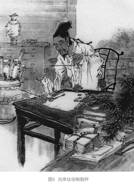 北宋初為了控制地方財(cái)政,中央下令各州郡的稅收,除地方留必要的開支外,所有的錢幣(銀兩)、絹帛都要送至京師。太平興國(guó)二年(公元977年)前后,連續(xù)發(fā)生內(nèi)庫(kù)和外府受納各州縣上繳的銀兩,賬目差錯(cuò)不斷發(fā)生。一度只歸結(jié)為斗秤倉(cāng)吏欺壓秤盤,貪贓為奸。為此入獄乃至家破人亡者甚眾,案件查辦達(dá)11年之久,仍無(wú)實(shí)據(jù)。至景德年間(公元1004~1007年),宋真宗趙恒下詔重新劃定度量衡,令掌管皇族內(nèi)府庫(kù)藏的官吏劉承珪負(fù)責(zé)辦理。劉承珪檢定了當(dāng)時(shí)宮廷所藏最高一級(jí)標(biāo)準(zhǔn)砝碼,從一錢至十五斤的五十余枚,經(jīng)過反復(fù)校驗(yàn)后,發(fā)現(xiàn)這些器具本身并沒有一個(gè)統(tǒng)一的標(biāo)準(zhǔn),而在宮廷外,政府向地方收取金銀稅賦時(shí),則要求自毫厘計(jì)之。由于官府所藏砝碼最小量值僅始于錢,標(biāo)準(zhǔn)又無(wú)定制,致使弊端重生,百姓叫苦不迭。劉承珪經(jīng)過一番調(diào)查研究后,提出要整敕度量衡必須追本溯源,參照歷代的記載和實(shí)物,重新制定權(quán)衡標(biāo)準(zhǔn)。秦漢時(shí)重量最小單位是黍,10黍?yàn)?累、10累為1銖、24銖為1錢,久而久之逐漸約定俗成,“錢”作為一個(gè)重量單位而通行了,繼而十錢為一兩的進(jìn)位制被官民習(xí)用。到了宋代初期,這兩種單位仍并用。劉承珪正是利用了這兩種衡制,來(lái)重新校準(zhǔn)權(quán)衡標(biāo)準(zhǔn)的(見圖6)。第一步:廢除黍、累、銖這些非十進(jìn)位的古制,正式確定10錢為1兩,錢以下設(shè)分、厘、毫,均為十進(jìn)位。第二步:采用古今兩種不同的單位制相互校準(zhǔn),以求得統(tǒng)一的單位量值。具體做法是:以一兩為基數(shù),精心制造4支不同稱量的桿秤,以其中兩支為例:一支以兩、錢、分、厘為單位,另一支以兩、銖、累、黍?yàn)閱挝?,每一支秤都?個(gè)提,以便擴(kuò)大量程。我們僅各取其中一支,以中紐為例,簡(jiǎn)單加以說明。第一種:從零點(diǎn)至秤梢量程是一錢,以秤星為分度線,鏨成十等份,每一份準(zhǔn)為一分,每一分再析成十厘,這樣就可以得到錢、分、厘、毫的量值了;第二種:從零至桿梢為五錢,鏨成十二等份,每等份為一銖,每銖之間析成五等份,每一等份為五累,用兩支特制的小桿秤,相互校準(zhǔn)小量值的砝碼,再用淳化年間制造的銅錢,選出其中每枚重量為二銖四累(一錢)的標(biāo)準(zhǔn)錢幣共2400枚,又用這些標(biāo)準(zhǔn)錢去校準(zhǔn)15斤秤。經(jīng)過這樣反復(fù)校量,終于建立了一套更為合理、精確的權(quán)衡標(biāo)準(zhǔn)器?!端问贰ぢ蓺v志》詳細(xì)記載了當(dāng)時(shí)建立這一套國(guó)家級(jí)權(quán)衡標(biāo)準(zhǔn)的每一個(gè)具體步驟和方法,這些文字資料從另一角度說明了我國(guó)古代建立度量衡標(biāo)準(zhǔn)時(shí),是通過各種途徑、釆用各種方式去追求、去探索的。
