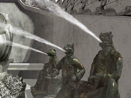清代乾隆年間在圓明園“海宴堂”西洋古建筑前,建有一個大型噴水池。這組噴泉構(gòu)思獨特,設(shè)計巧妙,被人稱為十二生肖“水力鐘”。此噴泉和十二生肖計時方法結(jié)合起來,組成一組構(gòu)思新奇絕妙的噴泉景觀。噴水池正中是一個高約二米、用三塊巨石雕成的蛤蜊,遠遠望去象一朵盛開的蓮花。兩旁八字形的石臺上,各有六個人身獸頭的銅鑄小動物,即鼠、牛、虎、兔、龍、蛇、馬、羊、猴、雞、狗、豬十二生肖,每個動物就是一個噴泉機關(guān),每到一個時辰,相應(yīng)動物口中就噴水兩小時。如子時是鼠噴水,丑時則換作牛噴水。十二個動物輪流值班,定時噴水,構(gòu)成了連續(xù)不斷的噴水時鐘;游人路經(jīng)此處,只要看看當(dāng)時由哪個動物噴水,就知道是什么時辰了。正午時,十二銅像口中同時噴射泉水。據(jù)說“海宴堂”和這組十二生肖“水力鐘”是為乾隆皇帝六十大壽興建的。由于它構(gòu)思奇特,靈氣十足,所以深得乾隆皇帝喜愛,常來此處觀賞游玩??上?,1860年英法聯(lián)軍焚燒圓明園,這一奇特景觀從此消失了。現(xiàn)在,人們到圓明園遺址看到的就是“海宴堂”西洋樓的殘石斷柱。十二生肖噴水池進行了清理整修,那美麗的石雕蛤蜊依然吸引著游人。但愿有朝一日,十二生肖“水力鐘”能重放異彩。