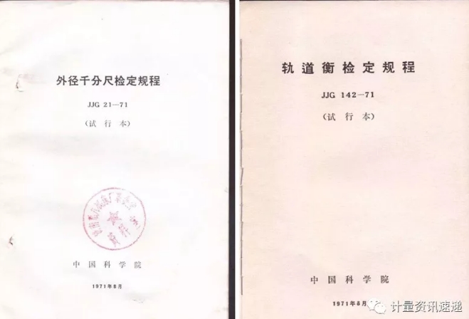 1958年以后一段時間,國家計量局一直由國家科委領(lǐng)導(dǎo),文化大革命期間國家科委和中國科學(xué)院合并成立了新的中國科學(xué)院,國家計量局和中國計量科學(xué)研究院都歸為中國科學(xué)院領(lǐng)導(dǎo)。中國科學(xué)院于1970年4月至10月,邀請北京地區(qū)工礦企業(yè)等有關(guān)部門組成檢定規(guī)程修訂小組,選擇了使用比較普遍的千分尺等七種檢定規(guī)程進行修訂,并以中國科學(xué)院的名義頒布實施。到目前為止,發(fā)現(xiàn)的最早采用“JJG”編號方法的檢定規(guī)程,是外徑千分尺檢定規(guī)程編號為:JJG21-71,外包皮為白色,尺寸為(20.9×14.8)cm。
