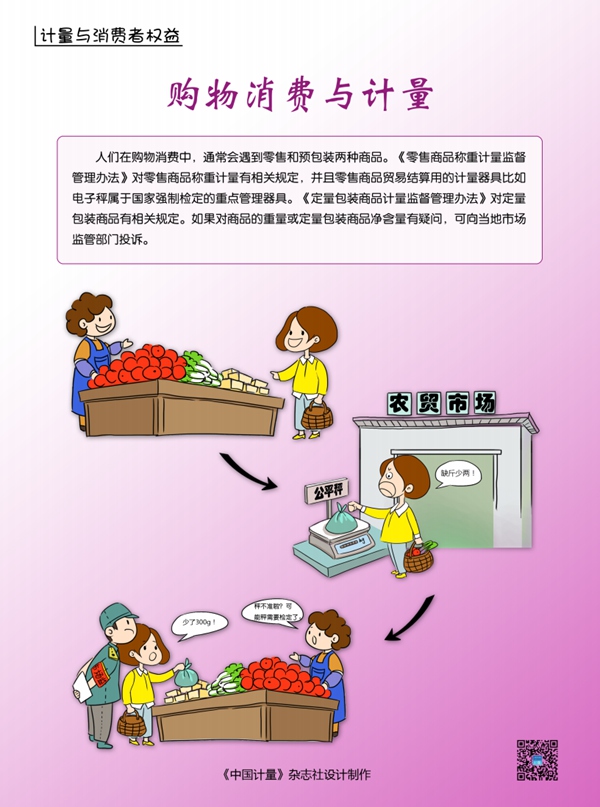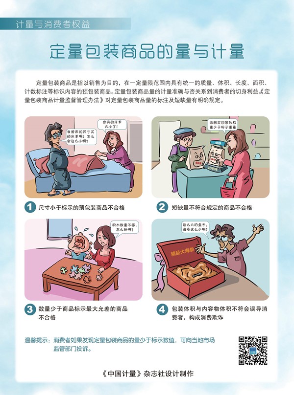 “計量與消費(fèi)者權(quán)益宣傳彩頁”通過老百姓喜聞樂見的漫畫形式,生動體現(xiàn)出計量與消費(fèi)者權(quán)益保護(hù)密切相關(guān),對人們生產(chǎn)生活、消費(fèi)維權(quán)的保障發(fā)揮著重要作用。