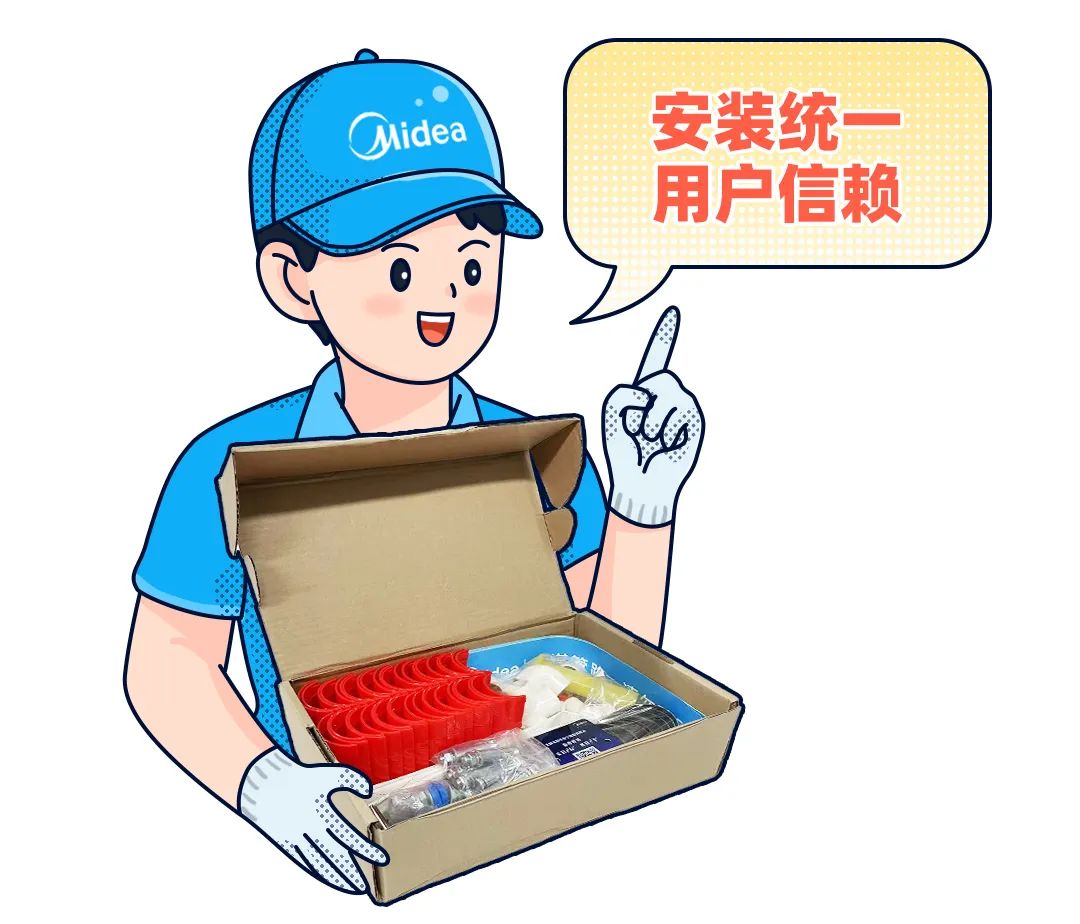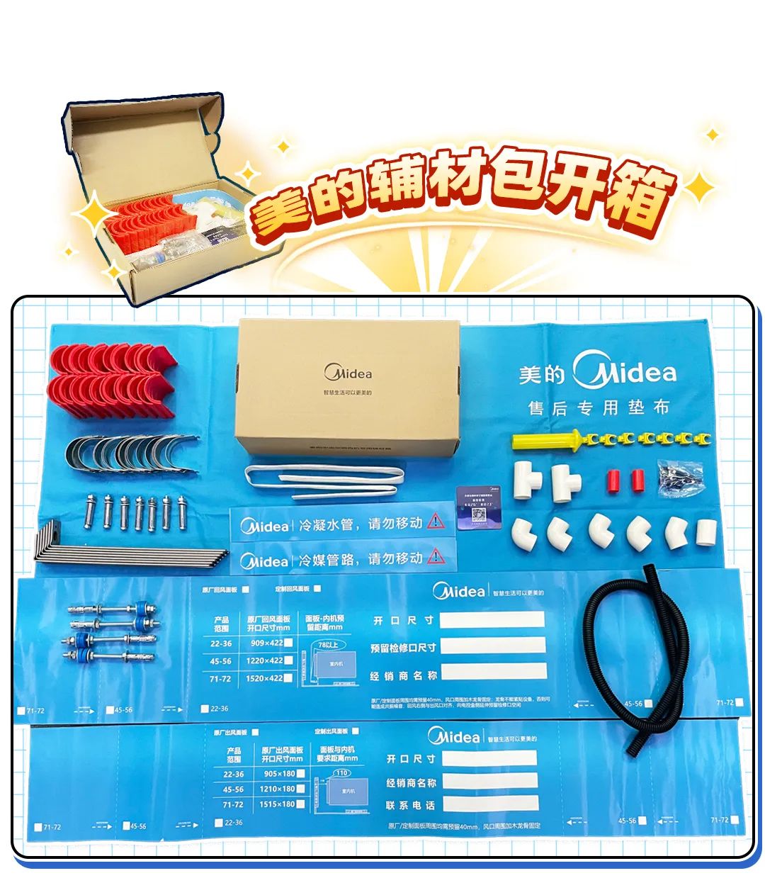 美的的標(biāo)準(zhǔn)化安裝輔材包 方便工程師及網(wǎng)點(diǎn)對(duì)輔材的采購 工程師一次攜帶上門,一次服務(wù)到位 實(shí)現(xiàn)安裝效率化 ![]() |