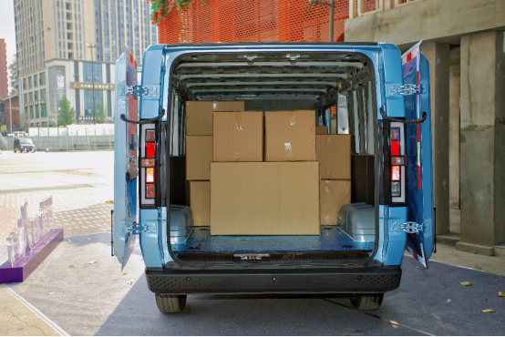 鑫源E3采用大開合角度、多開合方式的車門設(shè)計,更適應(yīng)日常配送場景,極大提升了裝卸效率。尾門采用270°對開,開啟面積更大,滿足叉車上下大件貨物的需求,省力更高效。側(cè)滑門最大開啟尺寸870mm,有效開啟面積 1.275m2,這樣從側(cè)面上下貨也很便捷,在狹窄區(qū)域也能輕松操作。同時,車輪轂包采用方形設(shè)計,1230mm間距讓木工板等常見貨物,實現(xiàn)平放;在貨廂頂部和底部還配備了5個天鉤和8個地鉤,便于在運輸貨物時固定貨物,也利于用戶各種裝載DIY,得益于超大空間與功能拓展靈活性,鑫源E3能根據(jù)實際用車需求進行組合、變換或改造,可變成各種移動售賣車、露營房車等,充分滿足物流商用車市場、個體私營用戶、專用車等細分領(lǐng)域更多用車場景需求。