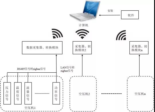 圖2 空壓機(jī)能效檢測和節(jié)能評估系統(tǒng)系統(tǒng)架構(gòu)圖