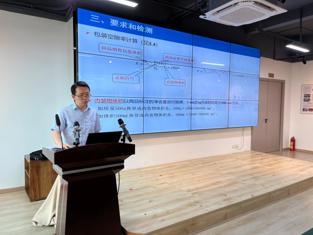 廣州計(jì)量院的高級(jí)工程師傅憶賓從“即將實(shí)施的新標(biāo)準(zhǔn)的主要內(nèi)容解讀”、“新標(biāo)準(zhǔn)典型疑問舉例”、“新標(biāo)準(zhǔn)與2009年版標(biāo)準(zhǔn)的內(nèi)容變化對(duì)比”等3個(gè)方面為參會(huì)人員進(jìn)行了1個(gè)多小時(shí)的詳細(xì)講解,逐條解讀了新標(biāo)準(zhǔn),結(jié)合商品實(shí)物圖和計(jì)算實(shí)例進(jìn)行檢驗(yàn)結(jié)果分析;明確了內(nèi)裝物、單件、包裝空隙率指標(biāo)要求、商品必要空間系數(shù)、計(jì)算方法等方面的注意事項(xiàng)。