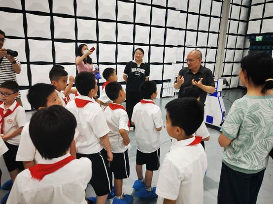 隨后,師生及家長們依次參觀了院交通、醫(yī)學(xué)、聲學(xué)、電磁兼容等專業(yè)實(shí)驗(yàn)室。院計(jì)量專家現(xiàn)場(chǎng)演示了融合多傳感器與高精度三維地圖的多功能沙盤,讓同學(xué)們親身感受北斗導(dǎo)航等尖端科技在自動(dòng)駕駛、智慧交通出行中的應(yīng)用?;顒?dòng)中,同學(xué)們還現(xiàn)場(chǎng)觀摩并操作體驗(yàn)了電子血壓計(jì)的使用及檢定,在消聲室、混響室中感受聲音的奧秘,在十米法電磁兼容檢測(cè)實(shí)驗(yàn)室學(xué)習(xí)電磁兼容性能的檢測(cè)知識(shí)。