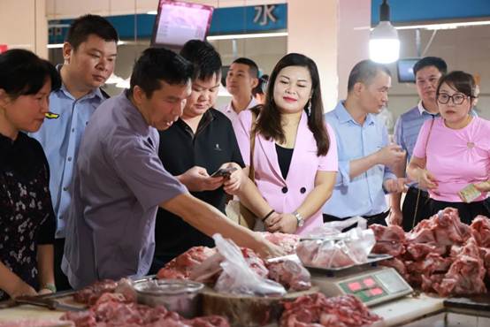 “先給您的手機貼上一個統(tǒng)一印制的標簽,咱們用市計量所檢定合格的電子計價秤來測量一下您的手機重量,這里顯示您的手機重262克,這是手機帶殼的總重量,咱們標記262克……您看,您買的肉重400克,這時候您再把貼了標簽手機放上,現在這個秤顯示665克,是因為增加了手機262克的重量,允許誤差在±10克以內的話,說明這個秤是準的?!惫ぷ魅藛T帶著消費者一邊走到市場肉鋪進行體驗一邊介紹道。