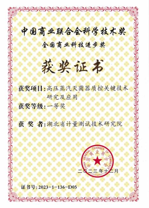 近日,湖北省計量測試技術(shù)研究院(以下簡稱湖北省計量院)知悉,其參與的“高壓蒸汽滅菌器質(zhì)控關(guān)鍵技術(shù)研究及應(yīng)用”項目榮獲“2023年度中國商業(yè)聯(lián)合會科學技術(shù)獎”全國商業(yè)科技進步獎一等獎,院醫(yī)學和電離輻射計量技術(shù)研究所所長石曙光榮獲一等獎。