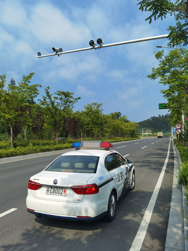 在接到公安交管部門的委托任務后,十堰市計量所迅速組建精干力量,成立專班,積極與湖北省計量院充分研討工作方案,在公安交管部門的全力配合下,于7月中旬聯(lián)合開展測速儀現(xiàn)場檢定工作?!叭臁奔由稀懊酚昙尽?,面對過強的光照增加了相機的曝光率,極大降低了儀器抓拍圖片的辨識度;道路塌方導致光纖傳輸中斷,造成設備掉線無法獲取數(shù)據(jù)等各種惡劣的氣候條件對檢定工作造成的諸多困難,市計量所積極同交管、通信、路政、運維等部門及時溝通,逐一排查,確保所有的測速儀都符合要求。特別是全市最遠的竹溪縣關埡子卡口測速點位,由于距離十堰市中心210公里,為了不影響整體工作進度,檢定人員在將近40攝氏度的高溫天氣里,連續(xù)戶外工作11個小時,全面完成竹溪縣境內(nèi)38個單點測速儀、16套區(qū)間測速儀的檢定工作。