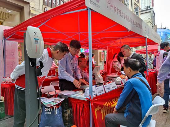 廣州計(jì)量院的志愿者教群眾識(shí)別合格充電樁
