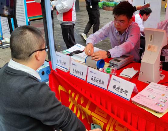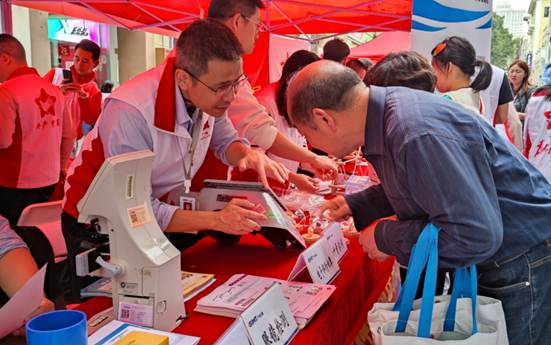 活動(dòng)尚未正式開(kāi)始,就已經(jīng)有不少群眾早早來(lái)到現(xiàn)場(chǎng)咨詢(xún)和等待。有的街坊甚至比活動(dòng)開(kāi)始提前了半小時(shí)趕到現(xiàn)場(chǎng),希望能第一時(shí)間了解活動(dòng)內(nèi)容。一位住在附近的居民表示:“我剛路過(guò)這里看見(jiàn)擺攤,馬上趕回家拿上血壓計(jì)過(guò)來(lái)了?!被顒?dòng)現(xiàn)場(chǎng)氣氛熱烈,走過(guò)路過(guò)的街坊紛紛將血壓計(jì)、眼鏡等帶來(lái)參加免費(fèi)檢測(cè)。