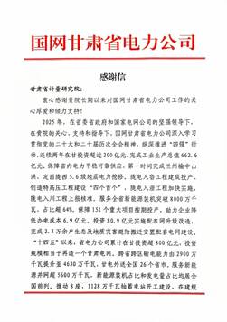 此次評價工作的順利完成,是甘肅省計量研究院服務地方經(jīng)濟發(fā)展、履行法定計量職責的生動體現(xiàn),也彰顯了本院在電能計量領域的專業(yè)能力與責任擔當。收到感謝信后,全院干部職工備受鼓舞。院相關負責人表示,這份贊譽既是肯定更是責任,未來,甘肅省計量研究院將繼續(xù)秉持 “精準計量、服務發(fā)展” 的宗旨,持續(xù)深化與國網(wǎng)甘肅省電力公司的戰(zhàn)略合作,在智能電網(wǎng)計量、新能源計量監(jiān)測等前沿領域加大技術研發(fā)力度,不斷提升服務效能與專業(yè)水平,以更優(yōu)質的計量技術服務護航區(qū)域能源安全,為甘肅經(jīng)濟社會高質量發(fā)展注入計量力量。