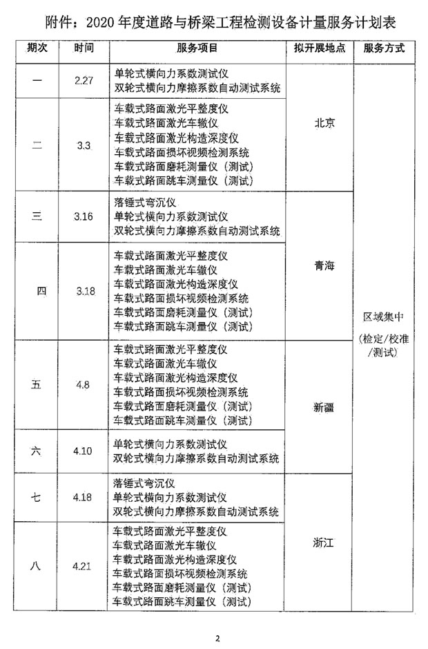 2020年度道路與橋梁工程檢測設(shè)備集中檢定校準工作計劃