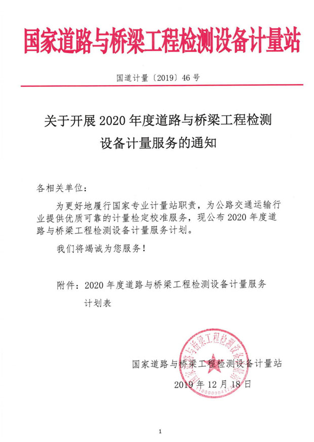 國家道路與橋梁工程檢測設(shè)備計量站為更好的履行國家專業(yè)站職責,為公路交通運輸行業(yè)提供優(yōu)質(zhì)可靠的計量檢定服務,特向行業(yè)各相關(guān)單位發(fā)布2020年道路與橋梁工程檢測設(shè)備集中檢定校準工作計劃。