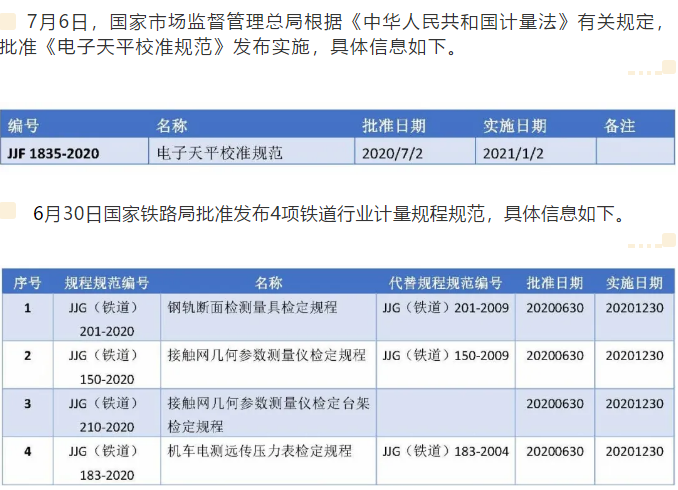 1項國家計量技術(shù)規(guī)范,4項鐵路行業(yè)計量技術(shù)規(guī)范發(fā)布