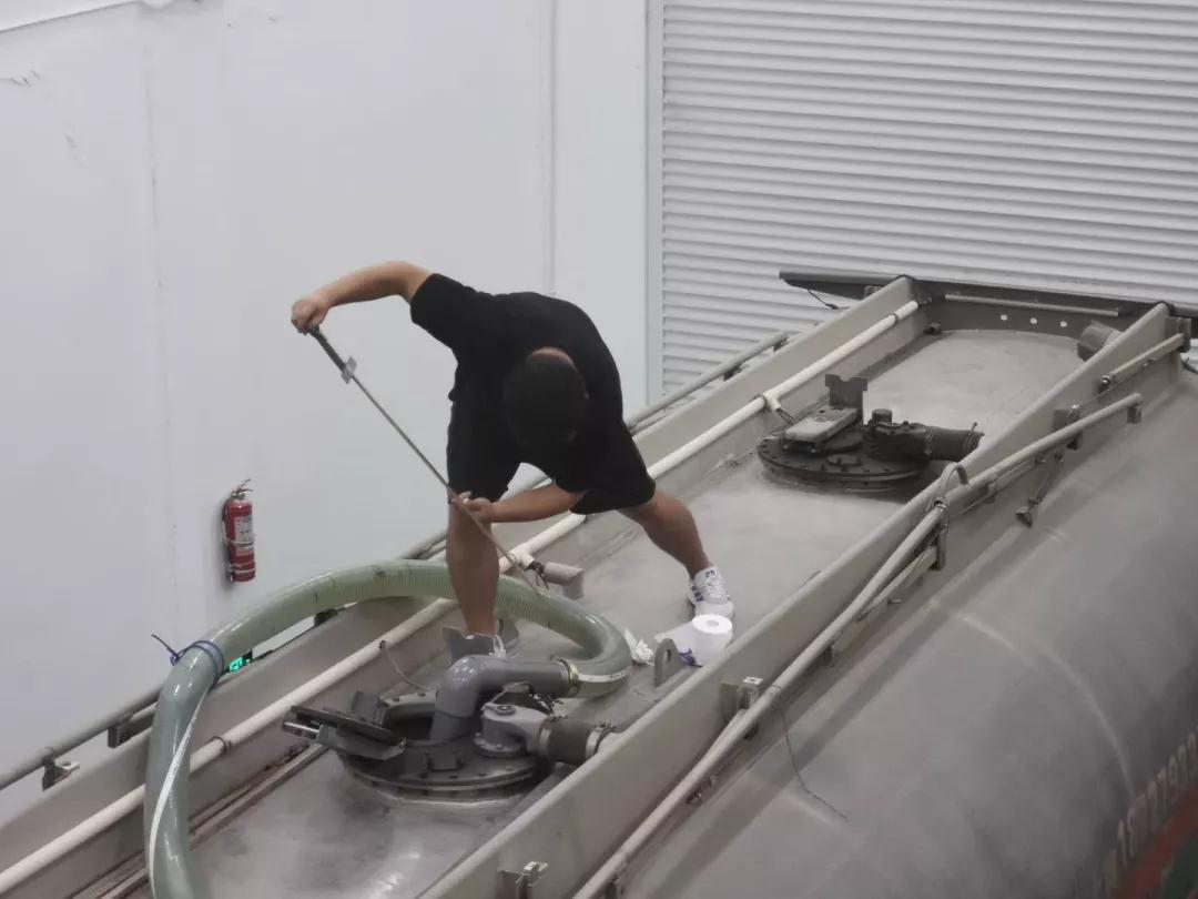 當天,湖北省計量院流量所所長游建軍一行5人趕到潛江分院,對中石化指定使用的3臺油罐車進行了計量檢定。檢定過程中,計量檢定人員依據(jù)相關(guān)計量檢定規(guī)程的要求,分別對油罐車進行了外觀檢查、密封性試驗和油罐容量計量檢定。一臺油罐車外觀檢查需時30分鐘、密封性試驗需時30分鐘;油罐容量測量前,確認緊急切斷閥打開,排污閥、泄油閥關(guān)閉,對其標稱容量75%以內(nèi)的容量值進行檢定,以及對標稱容量的75%~100%范圍內(nèi)進行檢定,需時4小時。全長5個小時的檢定過程中,檢定人員對每項技術(shù)指標都認真檢定計算并做好原始記錄,直至確保檢定結(jié)果準確可靠,最終確認項目計量性能完全滿足建設目標、產(chǎn)業(yè)需求。