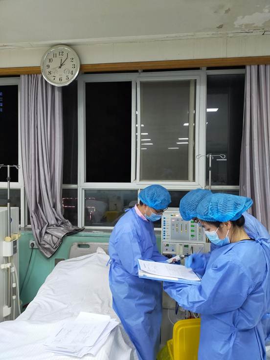 12月10日凌晨0:06,河南科技大學(xué)第一附屬醫(yī)院病房里,伴著血液透析儀的嗡鳴聲和次第閃爍的指示燈,身著藍(lán)色防護(hù)服的楊宇快速報(bào)出一組組透析液流量監(jiān)控示值數(shù)據(jù),身旁的李垚博正操控著設(shè)備,目不轉(zhuǎn)睛地盯著血液透析儀,執(zhí)筆的袁曉麗迅速地記錄著,張書偉則負(fù)責(zé)數(shù)據(jù)復(fù)核。