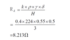 根據(jù)生產(chǎn)廠家提供的數(shù)據(jù),離子接地極選用Φ50mm、3m規(guī)格,結(jié)合相關(guān)的經(jīng)驗(yàn)公式進(jìn)行估算,我們選擇銅離子接地極(棒)的數(shù)量為20根。該計(jì)算公式為