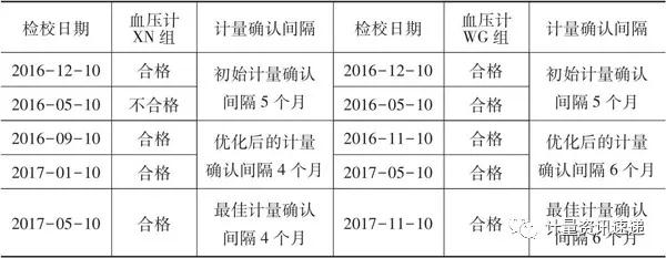 引用風(fēng)險評估的預(yù)防性經(jīng)驗公式,如下:PM Freq.=RL/15(次/年)PM Inter.=12/PM Freq.=180/RL(月/次)經(jīng)計算,遵循強(qiáng)制檢定類醫(yī)療設(shè)備的初始計量確認(rèn)間隔不超過相應(yīng)檢定規(guī)程最長間隔的原則。例如:呼吸機(jī)的初始計量確認(rèn)間隔為4個月,監(jiān)護(hù)儀的初始計量確認(rèn)間隔為6個月。2.計量確認(rèn)間隔優(yōu)化本文在初始計量確認(rèn)間隔的基礎(chǔ)上,結(jié)合階段式調(diào)整法,以醫(yī)療設(shè)備的平均無故障時間為指標(biāo)調(diào)整優(yōu)化,最終將計量確認(rèn)間隔保持在合理的范圍內(nèi)。以忻州市人民醫(yī)院的水銀血壓計為例,水銀血壓計的RL值為36。通過公式計算得出,血壓計初始計量確認(rèn)間隔為5個月。然后將市人民醫(yī)院心內(nèi)科的10臺水銀血壓計記作XN組,五官科的10臺水銀血壓計記作WG組。每組血壓計檢校合格率達(dá)到90%,即為此組血壓計合格;否則,不合格。經(jīng)計量確認(rèn),在初始計量確認(rèn)間隔內(nèi),五官科的血壓計WG組合格,則延長下一次確認(rèn)間隔時間至6個月;心內(nèi)科的血壓計XN組存在不合格,則縮短確認(rèn)間隔時間至4個月。在后續(xù)計量確認(rèn)中,兩者滿足合格要求。因此,心內(nèi)科和五官科的最佳計量確認(rèn)間隔分別為4個月、6個月。檢校數(shù)據(jù)統(tǒng)計表如表2所示。
