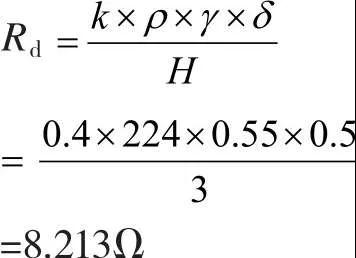 式中:Rd——電解離子接地系統(tǒng)的接地電阻;k——電解離子接地系統(tǒng)效率,為0.4;ρ——土壤電阻率(Ω·m);γ——降阻回填降阻率,為0.55;δ——電解離子接地系統(tǒng)的初始離子擴(kuò)散半徑,為0.5m;H——電解離子接地系統(tǒng)的長(zhǎng)度,為3m。
