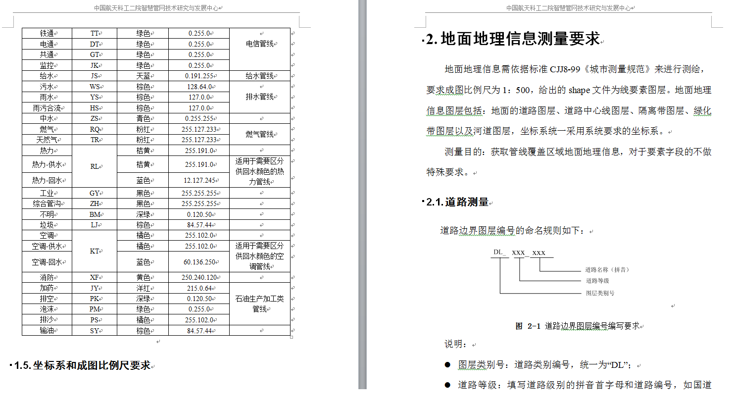 原來(lái),智慧市政團(tuán)隊(duì)有著一套完整的數(shù)據(jù)處理規(guī)范,規(guī)范基于CJJ8-99《城市測(cè)量規(guī)范》、CJJ61-2003《城市地下管線(xiàn)探測(cè)技術(shù)規(guī)程》和CJJ103-44《城市地理空間框架數(shù)據(jù)標(biāo)準(zhǔn)》,明確了管線(xiàn)測(cè)繪的成果形式;規(guī)定了不同管線(xiàn)的顏色、坐標(biāo)系、比例尺;定義了管線(xiàn)及其附屬物、特征管點(diǎn)的編號(hào)和命名要求。除此之外,對(duì)于安裝設(shè)備的點(diǎn)位,團(tuán)隊(duì)也有著嚴(yán)格的規(guī)范來(lái)約束。