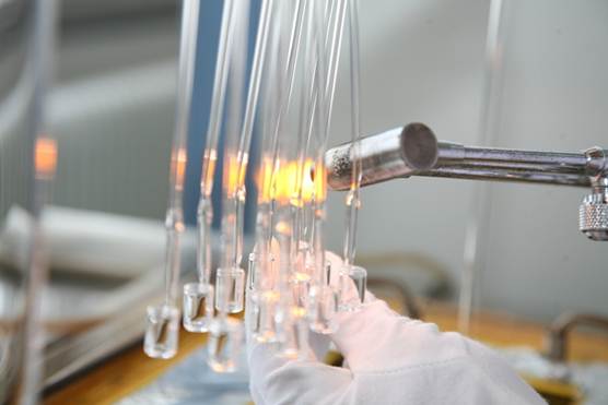 這是一個(gè)再平常不過的玻璃加工場(chǎng)面。即使現(xiàn)在高科技手段越來越多,銣泡玻璃加工也只能依靠人工完成。燒制玻璃是門非常了不起的手藝活,看似簡單的玻璃管對(duì)接,涉及到調(diào)火候,判斷玻璃的膨脹系數(shù),玻璃管過火時(shí)間,玻璃管在什么狀態(tài)下可以又快又好對(duì)接在一起......全憑玻璃工的多年經(jīng)驗(yàn)。光有經(jīng)驗(yàn)還不行,手法的快慢變化,兩手配合的靈活性,手速與通氣量大小的配合……這些玻璃操作技術(shù),沒有幾年的刻苦練習(xí),很難出徒。“臺(tái)上一分鐘,臺(tái)下十年功”航天科工203所玻璃工張文沖深有體悟地說道。