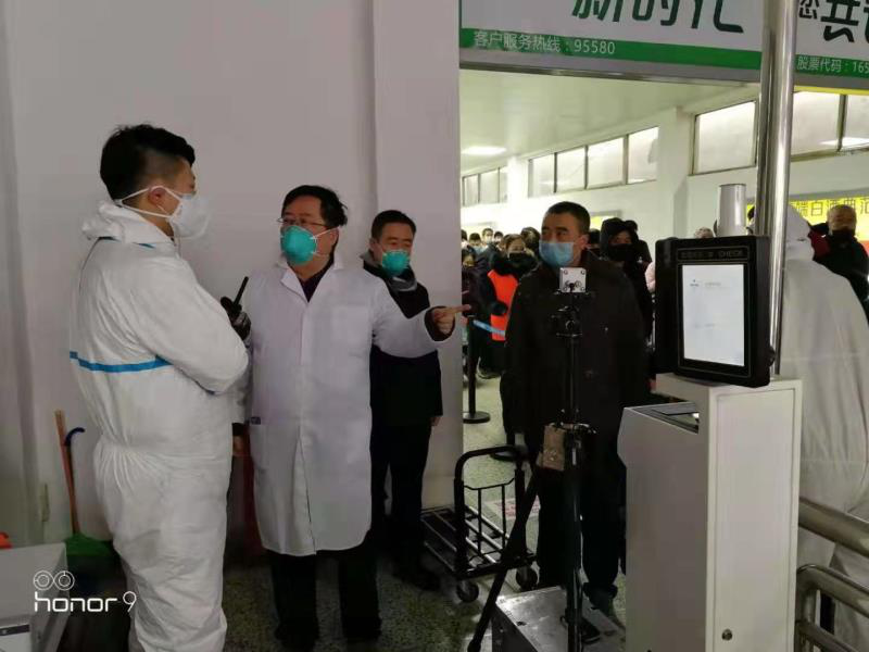 圖為甘肅院楊峻濤副院長在蘭州火東站了解紅外體溫計使用情況