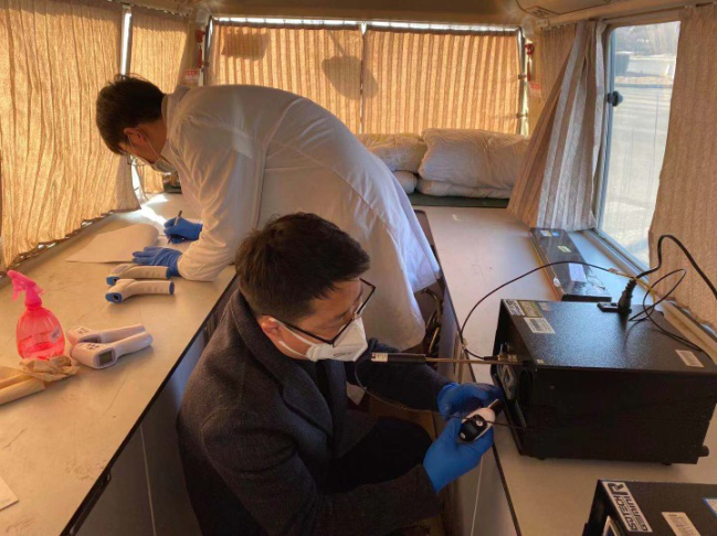 2020年2月11日,鄂爾多斯市產(chǎn)品質(zhì)量計(jì)量檢測(cè)所持續(xù)奮戰(zhàn)在抗疫前線,繼續(xù)為轄區(qū)高速卡口現(xiàn)場(chǎng)校準(zhǔn)測(cè)溫儀器。赴罕臺(tái)鎮(zhèn)109西出口04檢查站、銅川卡口、北出口06卡點(diǎn)防控檢查站等高速卡口校準(zhǔn)/調(diào)試了共22臺(tái)(件)紅外體表溫度計(jì)。保證了疫情防控計(jì)量器具量值準(zhǔn)確可靠,為前線人員的使用吃了一劑“定心丸”。