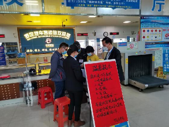 工作人員在汽車客運(yùn)站進(jìn)行體溫計儀器檢查