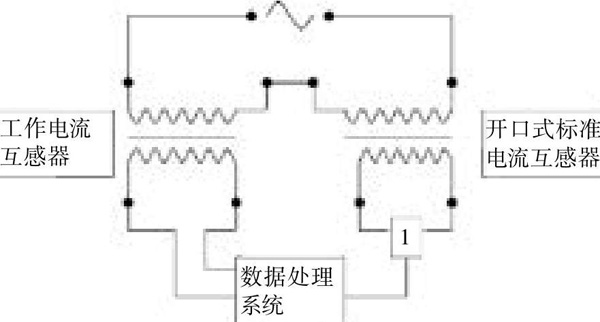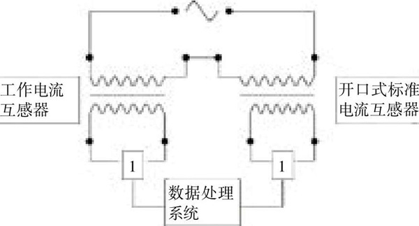方案二:圖2為電流互感器在線校準(zhǔn)系統(tǒng)方案二基本原理圖,它也是由標(biāo)準(zhǔn)電流互感器、無(wú)線數(shù)據(jù)采集發(fā)射裝置和數(shù)據(jù)處理系統(tǒng)三部分組成,但采用另一種接線方法,校準(zhǔn)現(xiàn)場(chǎng)運(yùn)用一臺(tái)準(zhǔn)確度為0.01%的開口式標(biāo)準(zhǔn)電流互感器與被檢電流互感器進(jìn)行比對(duì)。工作電流互感器采用直接接入數(shù)據(jù)處理裝置的方法,而標(biāo)準(zhǔn)電流互感器連接無(wú)線數(shù)據(jù)傳輸裝置,采集數(shù)據(jù)進(jìn)入數(shù)據(jù)處理系統(tǒng),實(shí)時(shí)監(jiān)控工作互感器的運(yùn)行狀況并進(jìn)行誤差分析。