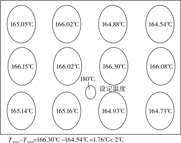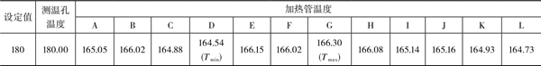 由此可見,由于固體材料加熱的復(fù)雜性要遠(yuǎn)高于液體介質(zhì),受傳熱材料的影響很大,一是不能僅限于校準(zhǔn)測(cè)溫孔一個(gè)點(diǎn),因測(cè)溫孔很小,加熱孔較大,造成漏熱嚴(yán)重,測(cè)量溫度偏差明顯;二是校準(zhǔn)必須包含加熱管本身,把12支加熱管當(dāng)成儀器的一部分,加熱后處于同一種工作狀態(tài),方可判定合格與否;三是要把恒溫準(zhǔn)確度為±2℃的技術(shù)指標(biāo),理解為兩部分:設(shè)定溫度與測(cè)溫孔溫度之差;各加熱管溫度之差。