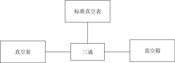 一般真空干燥箱均配置有真空泵,用真空膠管連接真空箱與真空泵的吸氣口,使整個真空系統(tǒng)處于密封狀態(tài)。檢測真空箱所配套的真空表時,用三通(或其他同功能器件)將標準真空表連接進入這個真空密閉系統(tǒng),使其再次成為一個閉合回路(見圖2) 。
