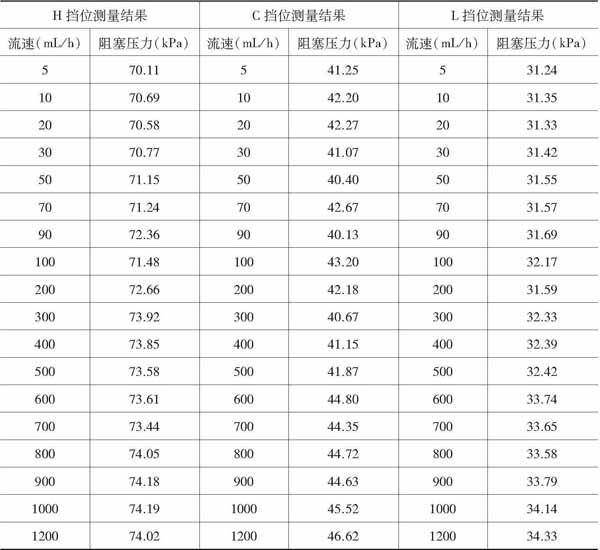 將注射泵質(zhì)量分析儀與被檢注射泵連接好后,注射泵設(shè)置為注射狀態(tài),檢測儀設(shè)置在測試阻塞報(bào)警狀態(tài),使注射泵注射受阻,產(chǎn)生相應(yīng)的聲光報(bào)警,并停機(jī),此時記錄檢測儀顯示的阻塞壓力。分別對注射泵的H、C、L三個阻塞壓力擋位正順應(yīng)性和逆順應(yīng)性進(jìn)行校準(zhǔn)。