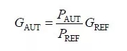天線增益的測量中常用且較為簡單的方法為比較法,它是采用已知增益或可準(zhǔn)確計算出增益的天線作為參考天線,外加天線測試轉(zhuǎn)臺、功率信號源、場強(qiáng)計等,分別測量參考天線與待測天線接收到的功率,即可得出待測天線的增益GAUT為