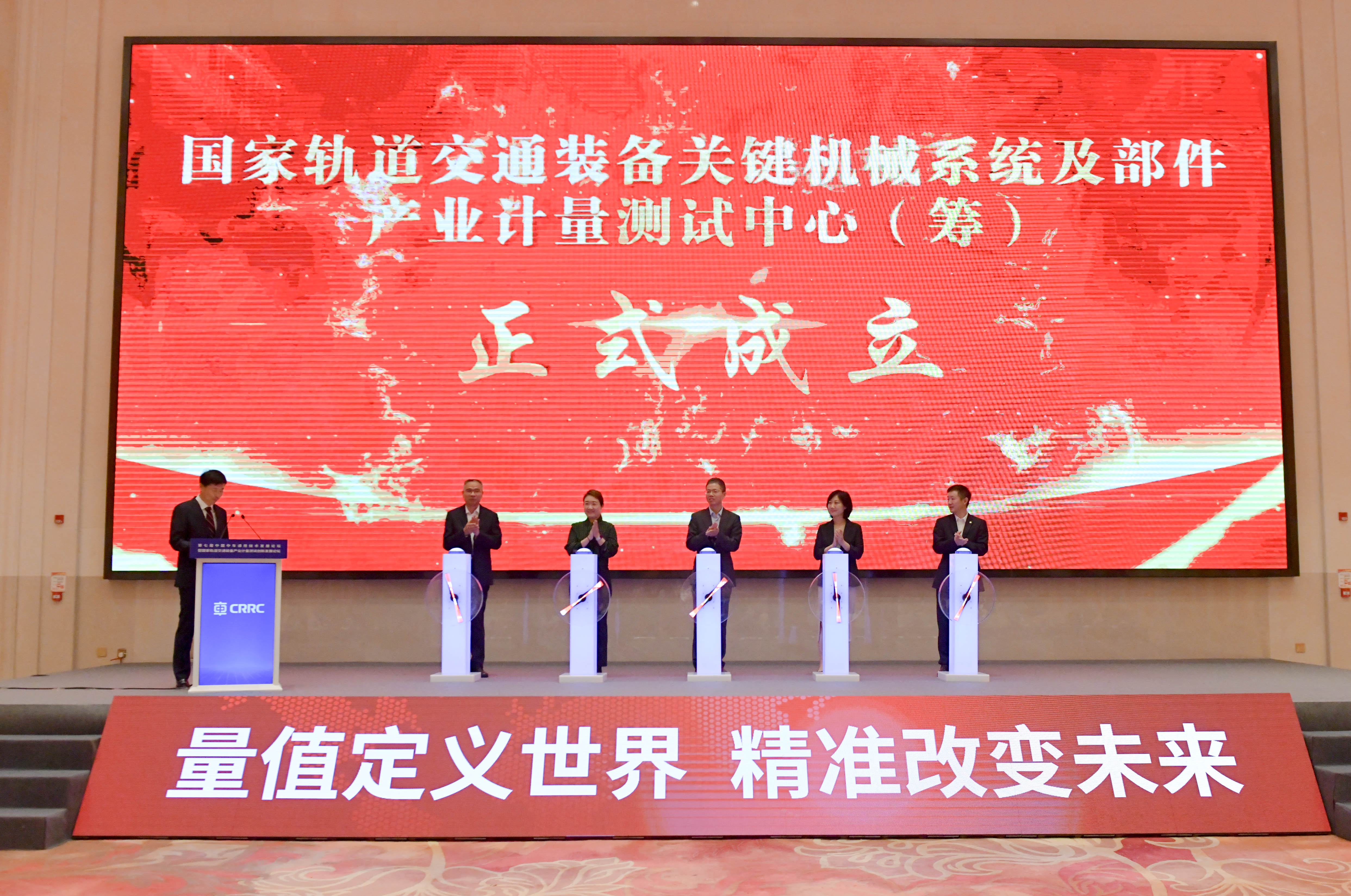 論壇伊始,舉行了國家軌道交通裝備關(guān)鍵機械系統(tǒng)及部件產(chǎn)業(yè)計量測試中心(籌)成立儀式。常州市市場監(jiān)督管理局計量處副處長鄧云宣讀了籌建批文,經(jīng)開區(qū)市場監(jiān)督管理局局長周茹對中車戚墅堰所在籌建過程中付出的努力給予高度評價,并闡述了中心的成立對國家計量檢測技術(shù)進(jìn)步和地方相關(guān)產(chǎn)業(yè)發(fā)展的重要意義。隨后,與會相關(guān)領(lǐng)導(dǎo)共同登臺為中心揭幕。該中心的成立,是中車戚墅堰所繼國家企業(yè)技術(shù)中心后成立的又一個國家級創(chuàng)新平臺,也是全國軌道交通裝備領(lǐng)域布局的第二個國家產(chǎn)業(yè)計量測試中心。中心將不斷強化計量測試技術(shù)和計量科技創(chuàng)新能力,發(fā)揮中心在軌道交通裝備關(guān)鍵機械系統(tǒng)及部件產(chǎn)業(yè)發(fā)展中的技術(shù)支持和引領(lǐng)作用,提升產(chǎn)業(yè)質(zhì)量與核心競爭力,促進(jìn)軌道交通裝備關(guān)鍵機械系統(tǒng)及部件產(chǎn)業(yè)創(chuàng)新發(fā)展。