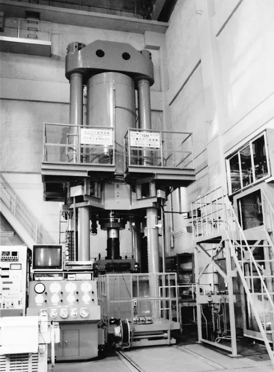 1984年9月,我到日本參加國際會議并到日本計量研究所參觀當(dāng)時世界上最大的20MN 標(biāo)準(zhǔn)測力機(見圖1)。這臺設(shè)備當(dāng)時沒有運轉(zhuǎn),只能參觀外表。這臺測力機在1977年立項,到1982年建成,該機采用了傳統(tǒng)的單缸結(jié)構(gòu)和動壓潤滑原理,所以大油缸長度為3.5m,主機高約12m,僅能做壓向力檢定。這臺測力機耗資9億日元。
