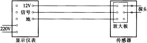 在檢查、調(diào)試過程中,發(fā)現(xiàn)傳感器安裝在管道上,而顯示儀表安裝在控制室,二者不僅距離遠,而且分置兩地,調(diào)整傳感器時無法直接從顯示儀表中看到調(diào)試情況。為解決這一問題,筆者想出了改變線路的方法,具體如圖1-1、1-2。