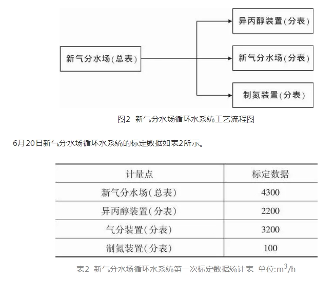 從表1中數(shù)據(jù)可以看出,3次標(biāo)定的結(jié)果出現(xiàn)了很大的誤差,使得標(biāo)定出的數(shù)據(jù)無法采用。再舉第二個例子,請看新氣分水場循環(huán)水系統(tǒng)工藝流程圖(見圖2)。