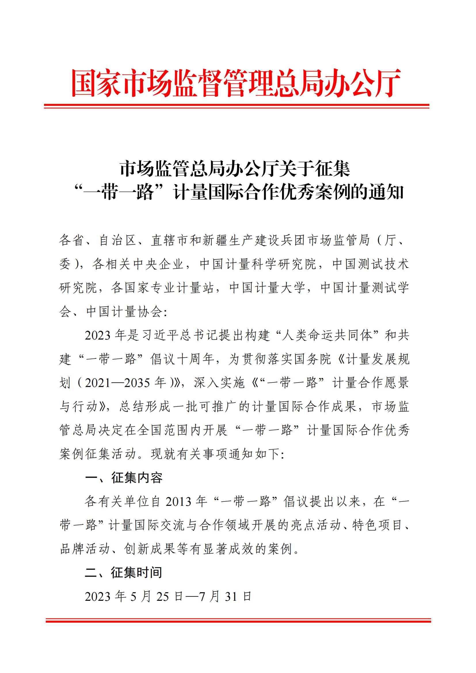 市場(chǎng)監(jiān)管總局辦公廳關(guān)于征集“一帶一路”計(jì)量國際合作優(yōu)秀案例的通知